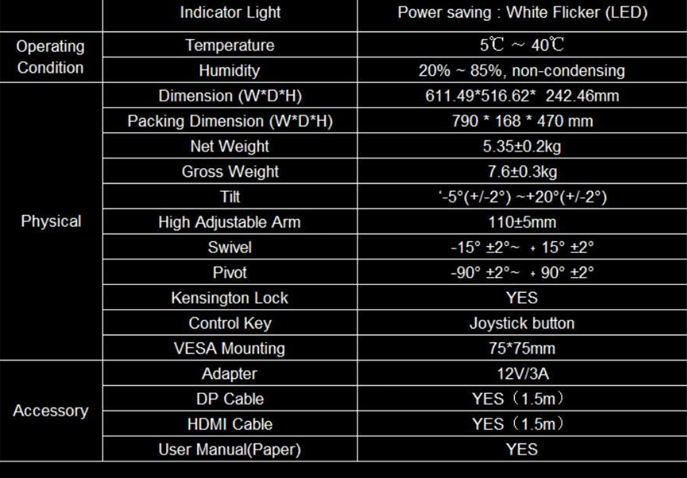 Phụ kiện: Adapter|DP cable| HDMI cable