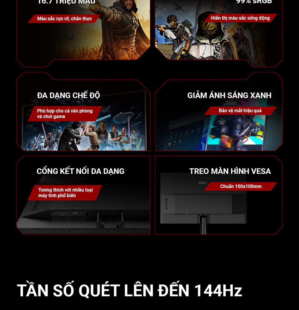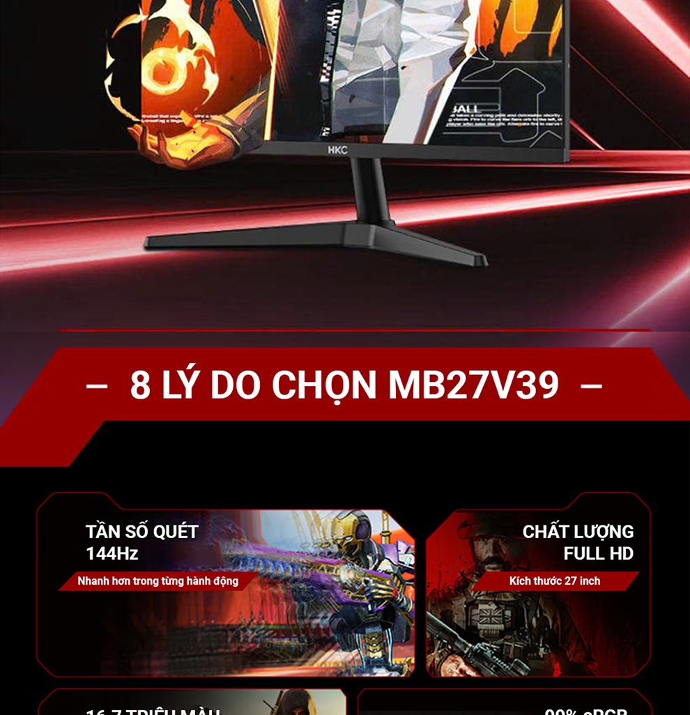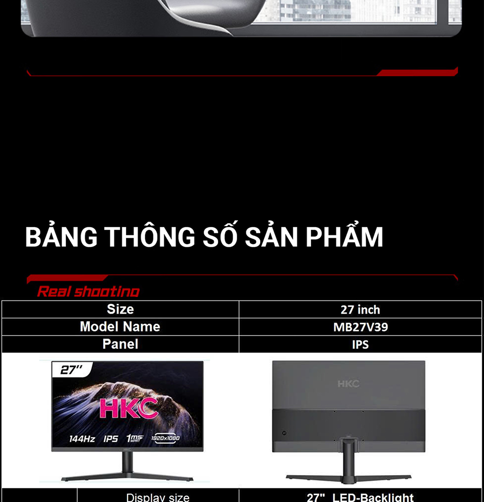 Màn hình văn phòng HKC MB27V39 27 inch, IPS, 144Hz
