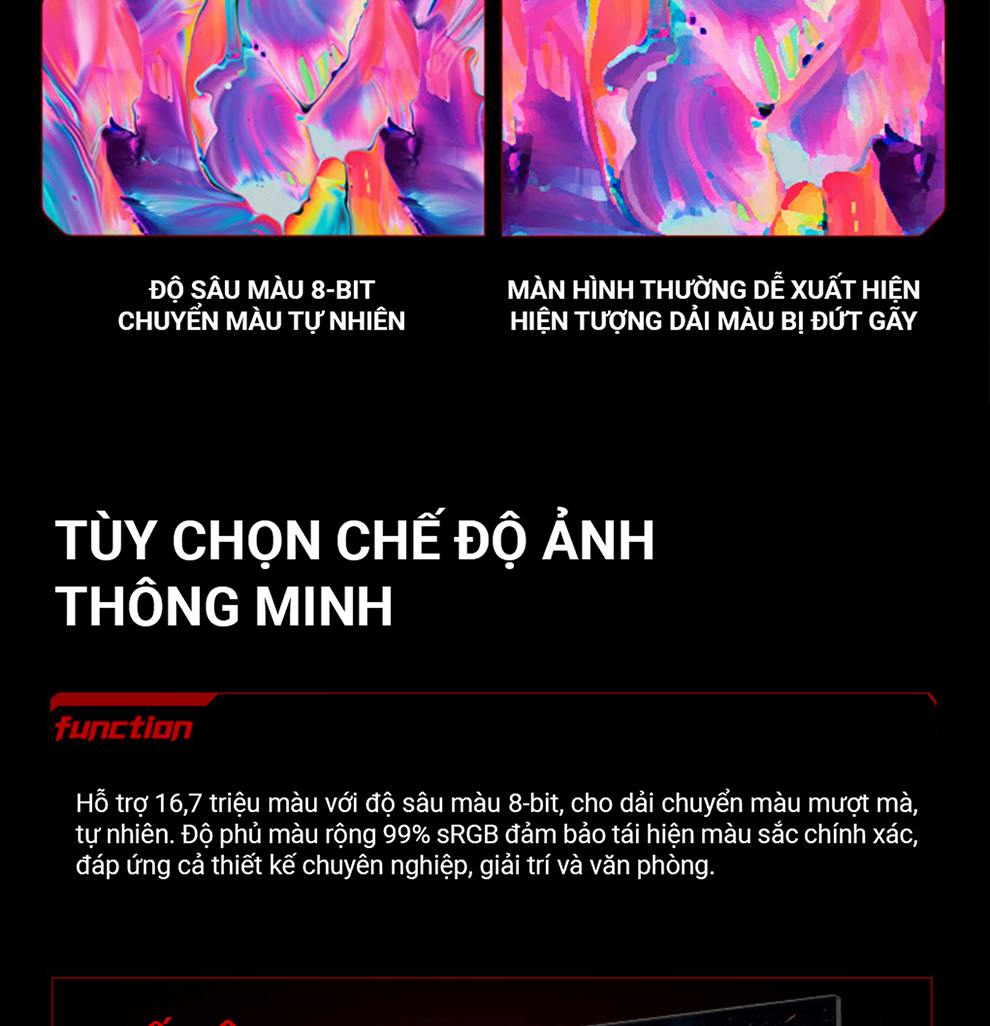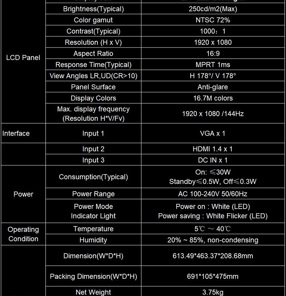 Độ sáng: 250 cd/m2 | 1000:1 | 16.7 triệu màu